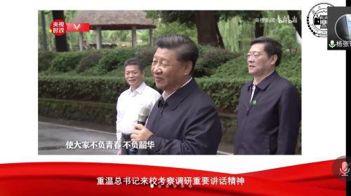 会议中间,杨张帝同志带领大家重温总书记来校考察调研重要讲话精神。会议指出要紧紧围绕总书记对学校、师生提出的工作要求和殷切嘱托,结合自身工作实际,坚持知行合一,主动担当作为,以昂扬姿态奋力开启建设富有历史文化传承的中国特色世界一流大学新征程。