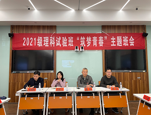 理科试验班2101班于中楼405举行“筑梦青春”主题班会。班会由宣传委员李子涵主持,理科试验班2101全体同学参加。校党委副书记陈伟,党委学生工作部副部长范媛吉,学院党委副书记、纪委书记刘松,学院党委副书记潘刚峰,理科试验班2101班主任崔承,学院2021级辅导员张子政出席本次班会,给同学们做出追梦道路上的指导。