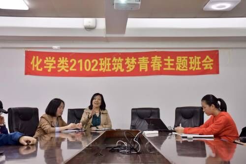 党委书记王玉枝老师、化学类2102班班主任董奇志老师、2021级辅导员张子政老师参加本次班会。