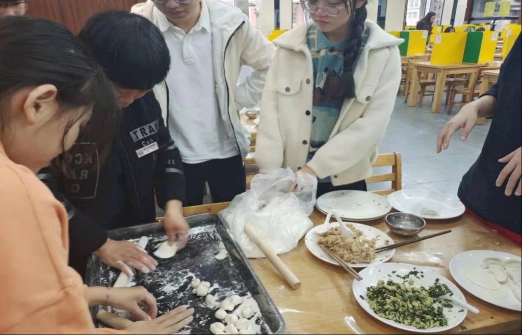 此外,同学们以班级为单位,利用食堂等场地,邀请园区宿舍管理员开展“冬至团圆聚”活动,大家自己动手包饺子,在表达了对一直陪伴同学们,为同学们服务的宿管阿姨的感谢的同时,也增进了彼此的友谊。