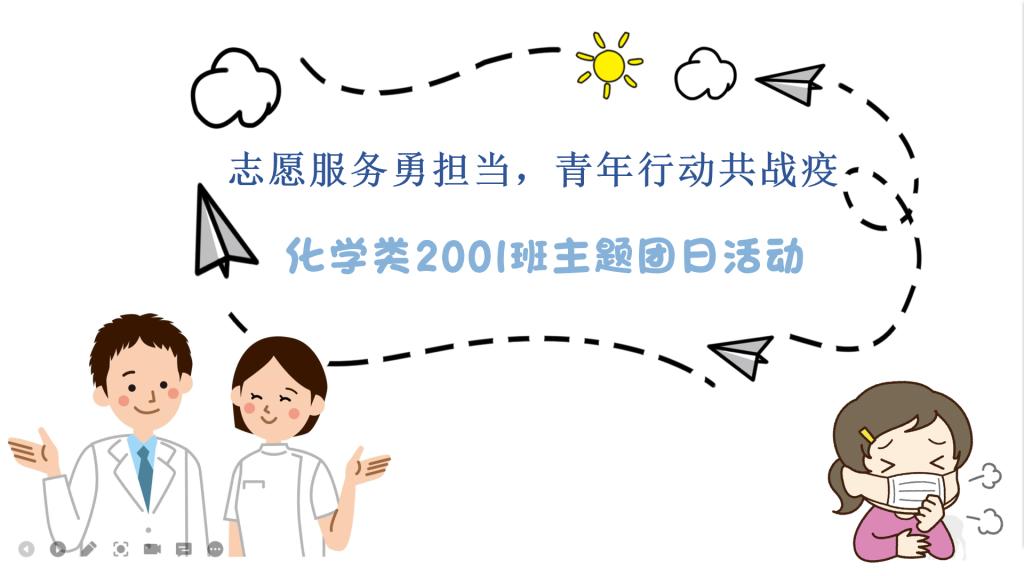 为深入学习习近平总书记关于青年工作的重要思想,履行引导凝聚青年、组织动员青年、联系服务青年的基本职责,着力提高组织力、引领力、服务力和大局贡献度并积极响应学院的号召,化学类2001班于2022年4月18日在线上举行了主题为“志愿服务勇担当,青年行6动共战疫”的主题团日活动。本次团日活动由化学类2001班团支书邹洋洋主持。