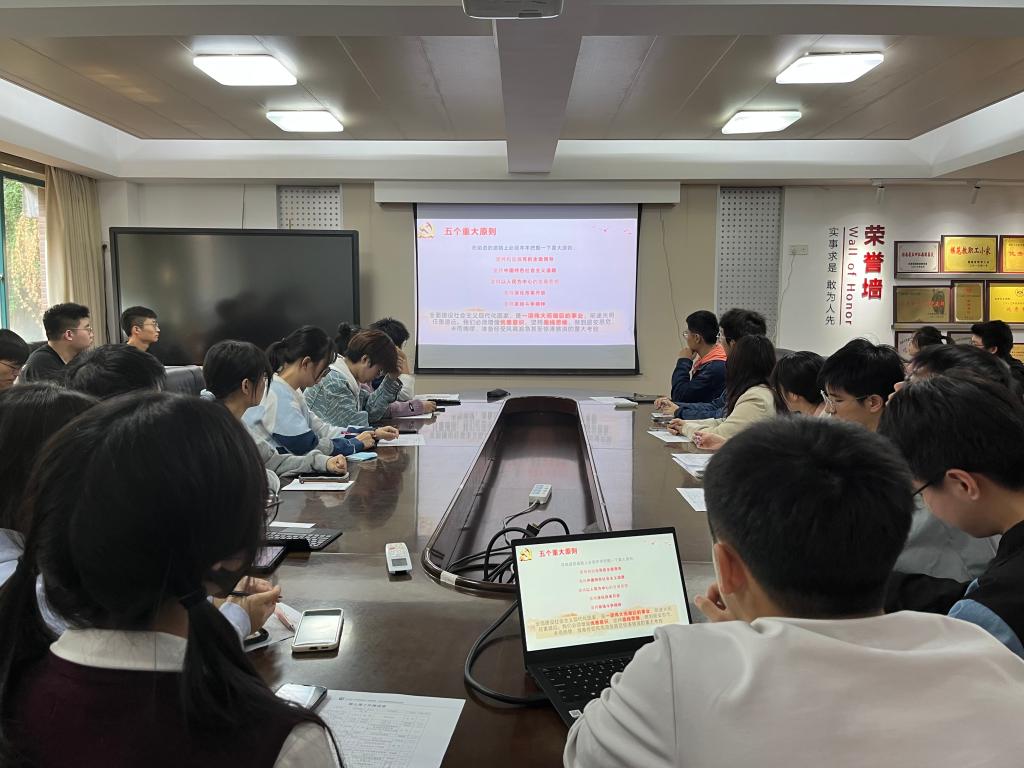 会上,学生会主席张乐天以近期召开党的二十大会议引出本次会议以及带领学习的主要内容。他总结,回顾过去,在新时代十年中在中国共产党领导下,我们迎来了中国共产党建党一百周年;见证中国共产党带领中国人民完成脱贫攻坚,全面建成小康社会的历史任务;见证中国共产党带领中国人民实现第一个百年目标,中国特色社会主义进入新时代。而展望未来,中国共产党将带领中国人民全面建成社会主义现代化强国,实现第二个百年目标,以中国式现代化全面推进中华民族伟大复兴。