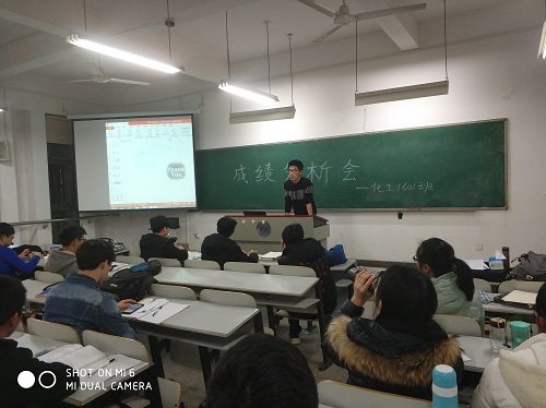 大会伊始,学习委员黄兰慧同学对班级期中各科考试成绩做了详细的分析,从本班个人成绩、均分及各分数段的人数进行了班级内部分析,并与同专业其他班级对比。黄兰慧同学说道:“整体而言,我们班的高分人数在化工专业的三个班里独树一帜,这是我们自身的优势所在,但是低分人数在整个专业里也是最多的,突出我们班两极分化十分严重。”针对两极分化这个问题,黄兰慧分析了具体的原因:“一方面课堂活跃度不够,很多同学在上课的过程中缺乏自己的思考,导致对学习内容不够了解,一些同学作息不够规律,出现课堂上犯困的现象;另一方面,班级内部交流不够,学习优秀的和学习稍落后的同学接触很少,未能起到少数带动整体的效果。”最后,针对这些存在的问题,黄兰慧同学提出了一些建设性措施,如增添了晚自习签退制度以保证自习的时长,每周安排一次学习小组讨论来解决学习中遇到的问题,班级组团打印复习资料等措施。