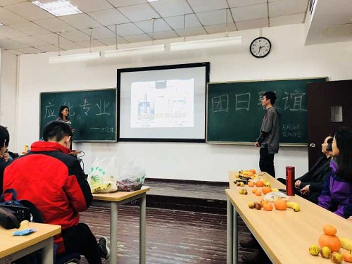 在经历了连续的寒潮之后,长沙终于迎来了明媚的阳光。在这样的好天气下,应用化学1801和应用化学1802于2018年12月18日下午2点30分在中楼402教室举行了团学日联谊活动。
