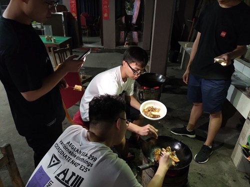 虽然由于农家乐不是使用煤气而导致火势不大,使得做菜过程颇有些坎坷,但同学们都十分享受这种自己动手做菜的过程,不少同学都表示自己这次掌握了不少新技能。而烧烤组的同学们也各自分工合作,姬文豪同学自制的烧烤酱料更是让同学们品尝过后拍手叫绝。