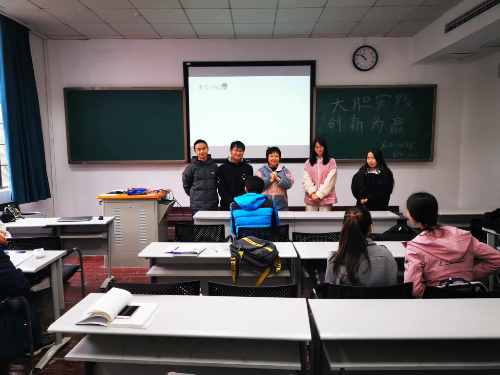 应用化学1701班按照学院要求,于12月30日上午10点在中楼209进行了主题为“大胆实践,创新为赢”的团日活动,并于当日下午在化工院C120进行了趣味实验。本次活动,由团支书肖善维同学组织,应化1701全体同学参加,班主任汪凤林老师进行科研讲解。活动中大家发言积极,气氛热烈。