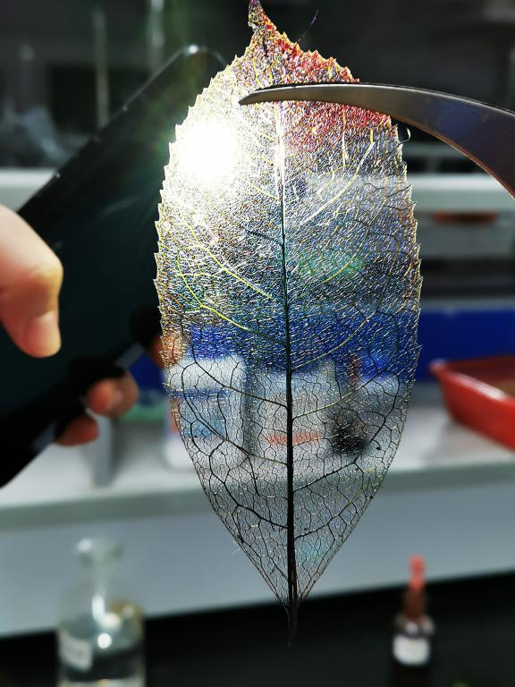 为了让大家能够更好了解科学的魅力,体会化学在生活中的应用,在活动的最后,大家在团支书的带领下前往实验室进行趣味实验。同学们先利用有机处理的办法,将树叶中的植物纤维破坏,再进行染色,最终得到美丽的书签。大家互帮互助,现场气氛十分活跃。本次活动在同学们满足的笑容中完美地落下了帷幕。