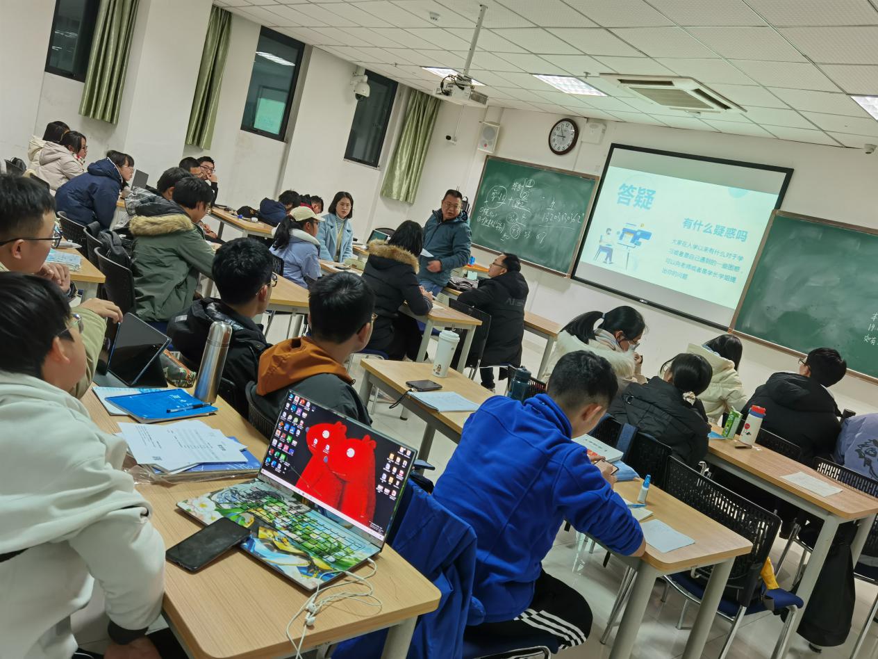 第四部分,邓伟老师与彭志鸿老师进行学业指导。首先由邓伟老师向大家介绍大学学习方法,强调进入大学后自主、自律学习的重要性,并同时鼓励大家主动与老师、教授等联系进入课题组,拓宽知识面、积累科研经验。随后由彭志鸿老师进行留学意向指导,并简单介绍化学专业未来的就业方向。“要有目标,才能有前进的方向”,彭志鸿老师这样鼓励同学们。