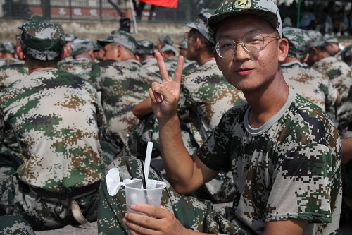 2021级全体本科新生在院旗前集合完毕,院长张晓兵老师代表学院发表讲话,对全体新生、教官、班助们表示了关心慰问,鼓励新生们要坚持训练,努力战胜困难,随后与其他前来慰问的领导老师们一起为新生发放清凉奶茶,院党委副书记潘刚峰老师代表学院亲自为教官们送上奶茶并表示感谢。与此同时,同学们也一齐向学员前来慰问的老师们表达了衷心的节日祝福,感谢老师们的亲切关怀。