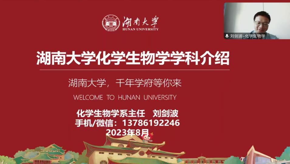 2023年8月17日19:00,通过腾讯会议开展了本科2023级新生专业认知教育。本次会议由化学生物学系主任刘剑波教授主讲。会议由2023级辅导员南彬主持。
