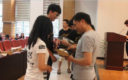 随后,2014级李晨昕作为学生代表向毕业生学长学姐们送去祝福,他们还赠送了亲手书写,满含深情的湖大主题明信片,学院老师也以端午节为契机,向全体毕业生送上了粽子和鸭蛋,全体与会学生接过毕业礼物,再一次感受到了化工院的温暖。无论何时何地,化工院永远是他们最坚强的后盾,是他们最温暖的港湾。全体与会师生们对2012级毕业生的祝愿就如同院党委书记王玉枝老师的欢送词里所表达的一样,愿2012级的全体毕业生将来能够坚守梦想,脚踏实地,展开一段新的旅途,打造一片新的天地,开拓属于自己的美好未来!