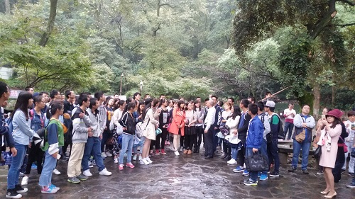 感受过岳麓书院的人文风光后,龙兵老师又带领同学们来到了园林,来感受岳麓书院美丽的自然风光。虽然是自然风光,但这里的一草一木都透露着浓厚醇香的文化底蕴。步入后,犹入潜龙之穴,一种深邃、悠静的气息扑面而来。同学们参观着那些古老的树木,看到展示树木标签上标明的保护单位是成人漫画
