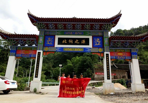首先团队一行五人来到新店镇政府,在工作人员的帮助下由朝阳村姚副村长驱车带领前往北侗之源——朝阳村。驱车行驶路上,目所能及的是正在兴建的以侗族文化为载体的旅游景点丙溪村和已经开发完善的侗族老寨。当队员们见到矗立在村口的民族特色鲜明的牌楼时,意味着他们已经正式踏上了朝阳村的土地。