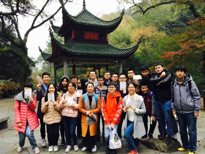 化学1601班于岳麓山脚下的爱晚亭开展了一次以“化学文化”为主题的团体活动,旨在向游客普及枫叶变红的这一现象中所蕴含的化学知识,并且在活动过程中增进同学之间的友谊,锻炼同学们与陌生人沟通的能力。
