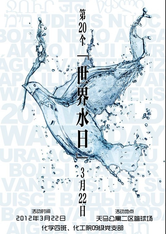 以国家环境保护局所提出的“节约用水,珍惜生存环境”为题,将举办一次与节约用水有关的活动。以此响应国家的号召,确保水资源的可持续发展,逐步提升人们节约用水的意识,加深人们珍惜水资源的观念。通过水日的宣传活动,唤起公众对水资源的危机感,加强公众对身边水体的关注程度,呼吁全民关注并参与到水资源保护事业中来。同时也号召大家不浪费一滴水,节约用水从小事做起。