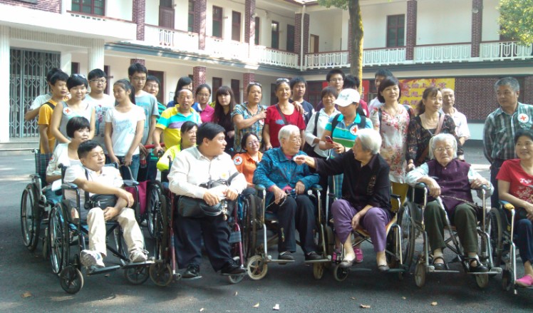 在干休所的大院里,化硕班的同学们扶着年迈的老红军到大院里欣赏由幼儿园的小朋友带来的精彩节目,席间还有两位百岁老红军和数位已过花甲的老红军,大家一起说说笑笑,欢声满堂。值得一提的是,十几位残疾的叔叔阿姨也参与了这次志愿者活动,在遇见同学们时,他们十分热情。同学们陪着他们聊天,推着轮椅陪他们看节目。他们的乐观,也深深地感动了大家。