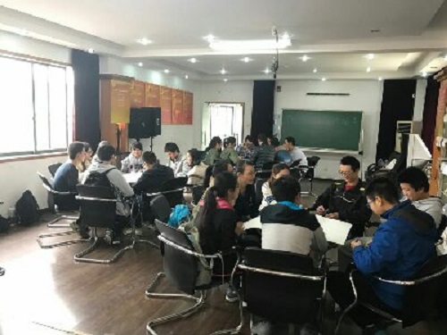 化学专业1601班第一次团队心理辅导课在新化工院D区四楼教工之家举行。此次活动由化工院16级新生辅导员陈晓晖老师主持,陈老师给化学1601班的同学们上了一节趣味横生的人生体验课。