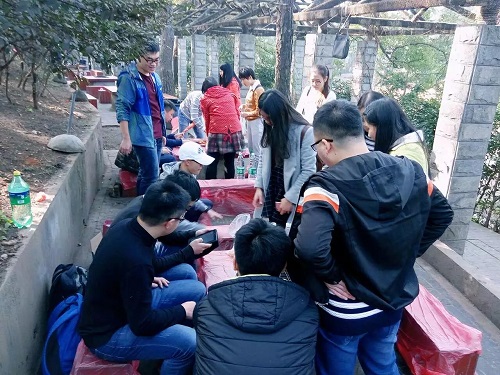 难得的好天气,同学们带好了烧烤用的食材、佐料、烤具,向着临近山顶的烧烤乐园进发。由于长时间没有出来踏青,同学们都对活动表现出极大的热情。一路上,大家一边欣赏着周围的青山绿树,一边畅谈着近段时间的所见所闻。与此同时,路边出现的红枫不时地引来同学们一阵阵的叹赏。