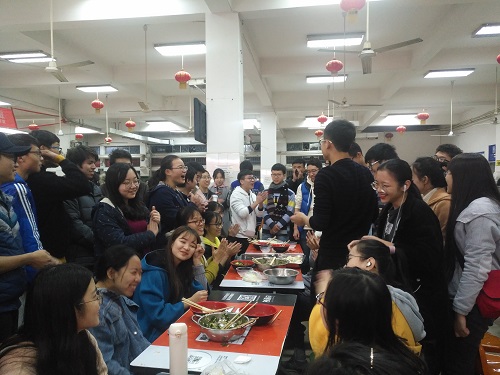 化学专业齐聚二食堂,共同度过冬至佳节。为了让同学们在感受传统文化的同时放松身心,化学三个班级的班长和团支书精心策划了趣味饺子赛。16级辅导员刘王楚齐老师也被饺子赛吸引,参与到活动中,与同学们一起分享节日的喜悦。