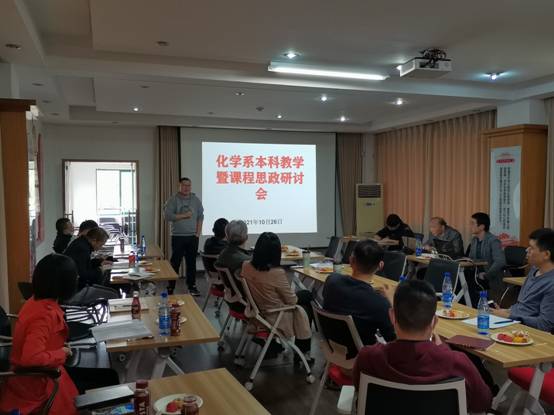 副院长阿布都热西提·阿布力克木、四大化学学科教学负责人及化学系教学一线教师出席了本次研讨会,化学系主任吴英鹏主持。