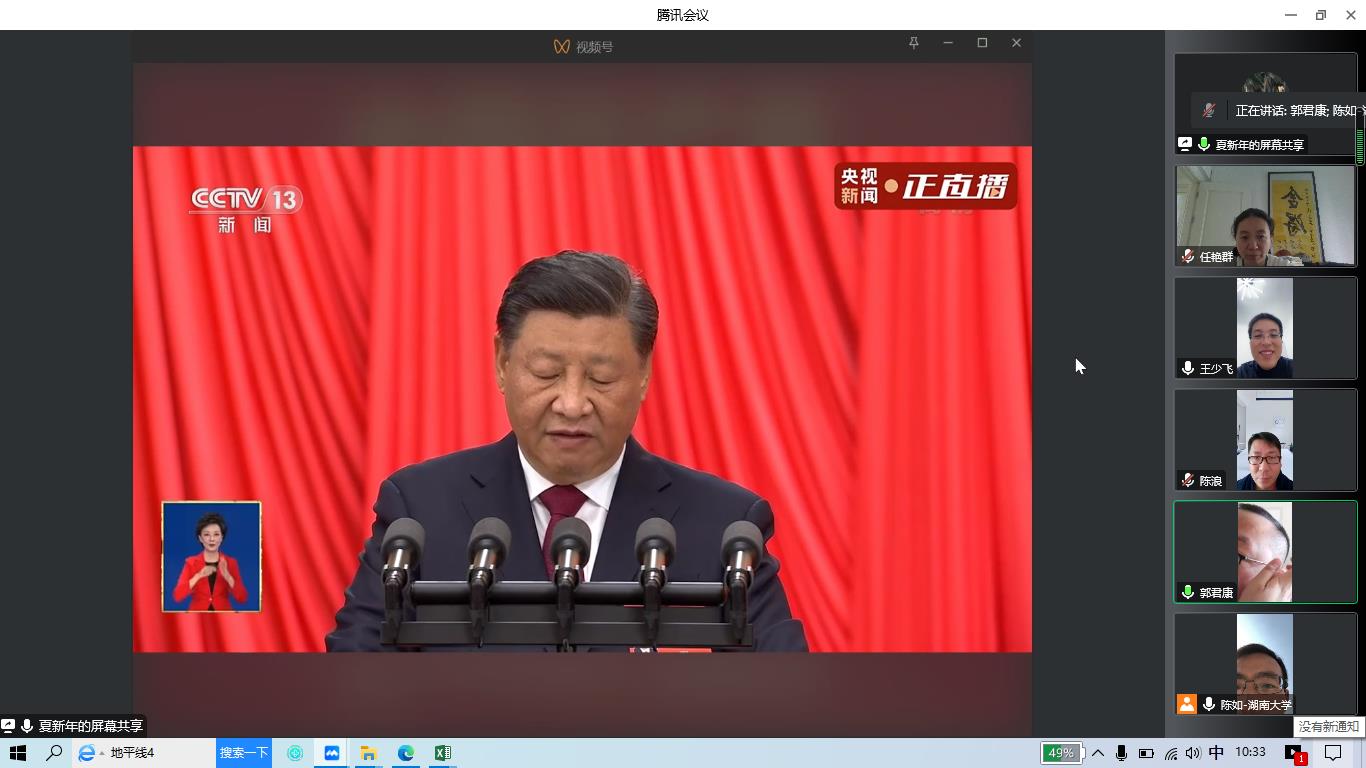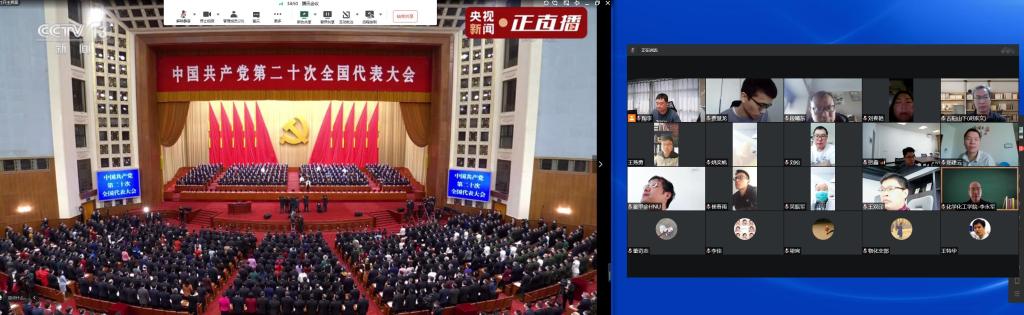 学院师生在教学楼、会议室、报告厅等,集中收看党的二十大开幕会盛况,认真聆听、学习、热议习近平总书记的报告。