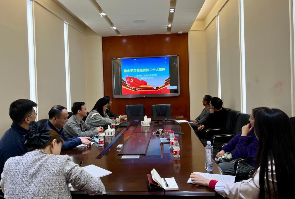 11月1日下午,机关党支部组织全体同志学习党的二十大精神会议在一舍123会议室举行,党支部书记刘卓领学。