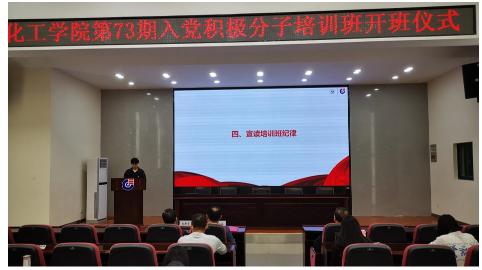 党委党建服务中心成员周梦真同学宣读此次培训班的学员守则和纪律。培训班纪律要求大家严于律己,服从管理,坚定理想信念,保持政治定力,不断提升完善自我,争取早日成为一名真正的共产党员!