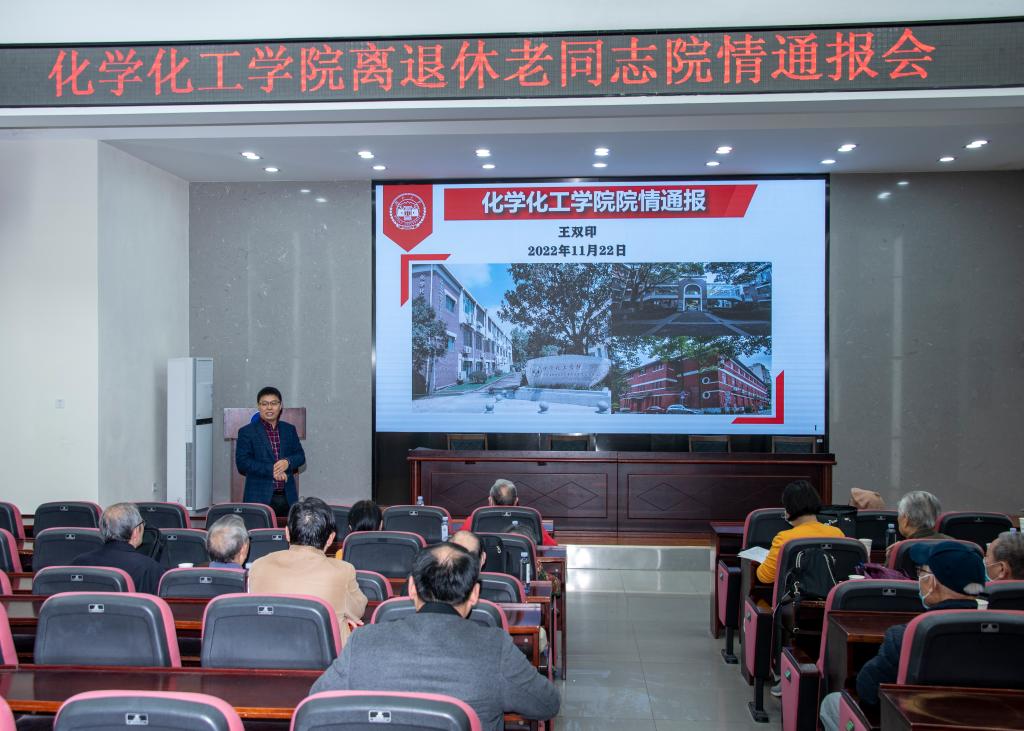 11月22日下午,学院在新化工楼D区报告厅召开离退休老同志院情通报会。学院党委书记王双印、副书记潘刚峰、副院长陈四海和离退休老同志代表20余人参会。