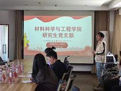 学生党建工作的基本情况,包括基本工作制度、特色党日活动、学院先进党支部、学生党建服务中心等内容。接着,分析04党支部书记杨艳霞同志以“党建领航亮底色,科研报国展初心”为主题介绍了本支部的基本情况,向大家展示了以扎实的基本功底推动科研主业、以奋勇的支部品格助力疫情防控、以丰富的党日活动赋能活力党建的“全国样板党支部”。之后,长沙理工大学材料学院研究生党支部副书记何张龙同志就支部建设、支部风采等内容进行介绍,并提出如何充分调动不同年级的研究生党员、怎么发挥出研究生党员群体的特色等支部建设中存在的问题。最后,徐晓宇老师就以上问题进行经验分享并建言献策,经过双方支部积极的讨论,大家纷纷表示本次座谈会有助于进一步夯实基层党建基础,提升支部建设质量,增进支部间友谊。