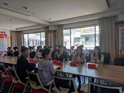 图为 戈明敏、杨艳霞、何张龙同志作汇报以及双方支部交流学习