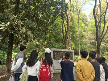 首先,全体同志登山至蔡锷墓,怀着敬意瞻仰了革命先烈蔡锷的生平事迹,同时,徐晓宇老师向大家讲解了他的红色故事:“蔡锷是我国著名的民主革命家,杰出的军事家、政治家。他为实现民主共和、国家独立而英勇奋斗,被誉为‘再造共和第一人’和‘护国军神’‧‧‧‧‧”。通过了解这位伟人与革命相伴的一生,大家纷纷表示深受蔡锷将军为四万万人争人格的豪情壮志触动,并由衷地表达了对革命先烈们的崇敬之情。