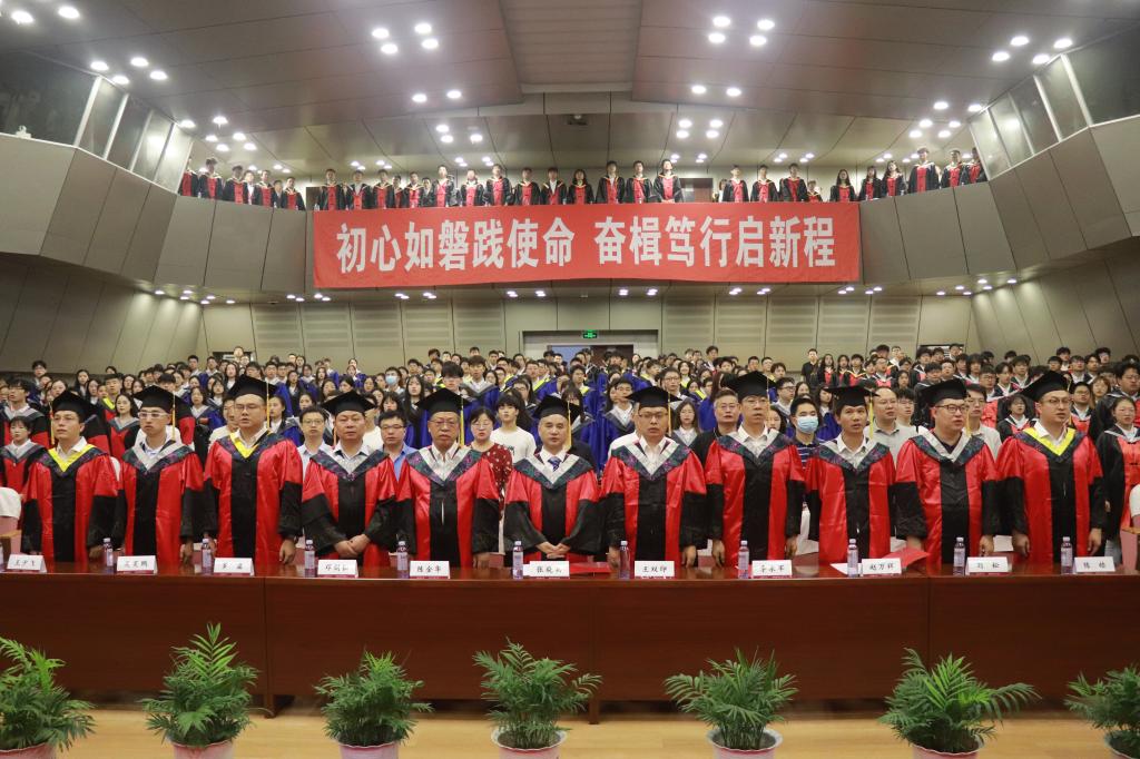 在雄浑激昂的国歌声中,毕业典礼正式拉开帷幕。