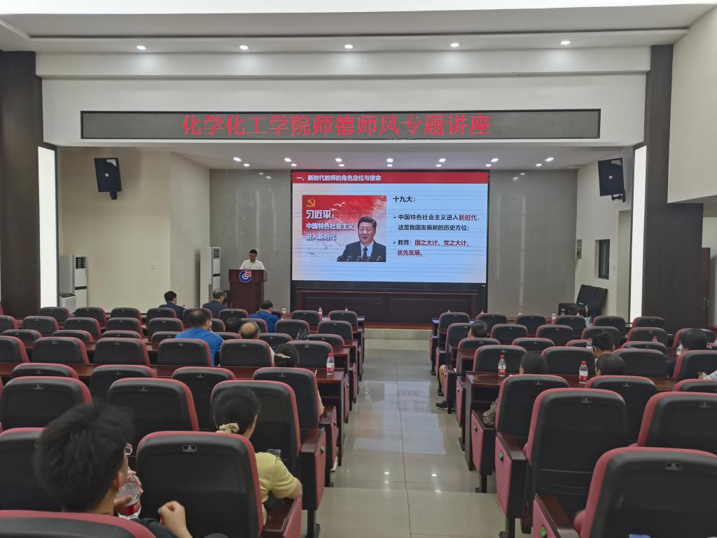 关于开展师德集中学习教育的通知》精神,学院在新化工楼D区报告厅组织开展师德师风建设专题学习。全院教职工参加会议,会议由学院副书记纪委书记楚霞主持。
