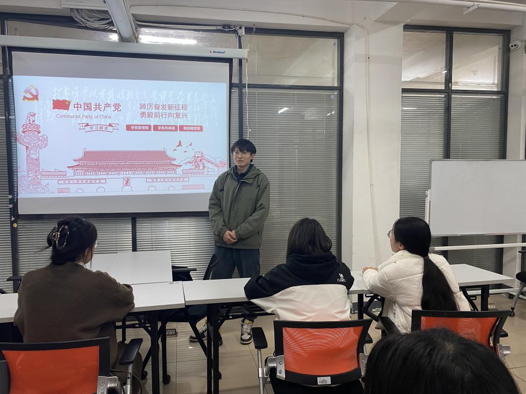 分析08党支部书记叶丽云说道:“如习近平总书记说‘让青春在为祖国、为人民、为民族、为人类的奉献中焕发出更加绚丽的光彩!’今天,我们比历史上任何时期都更接近、更有信心和能力实现中华民族伟大复兴的目标,但同时,我国改革发展稳定面临不少深层次矛盾躲不开、绕不过,国际形势严峻复杂,来自外部的打压遏制随时可能升级。面对风高浪急甚至惊涛骇浪的重大考验,唯有担当起党和人民赋予的历史重任,方能在激扬青春、开拓人生、奉献社会的进程中书写无愧于时代的壮丽篇章。‘敢担当’并非个人的单向付出,而是一种双向奔赴。担当使个人与国家、时代产生命运与共的联结,当一个人融入了一群人,一群人又会托举起一个人。身为研究生,努力做好科研工作,将论文写在大地上,为科研事业贡献自己的一份力量,突破自我,实现梦想,为祖国建设添砖加瓦。”