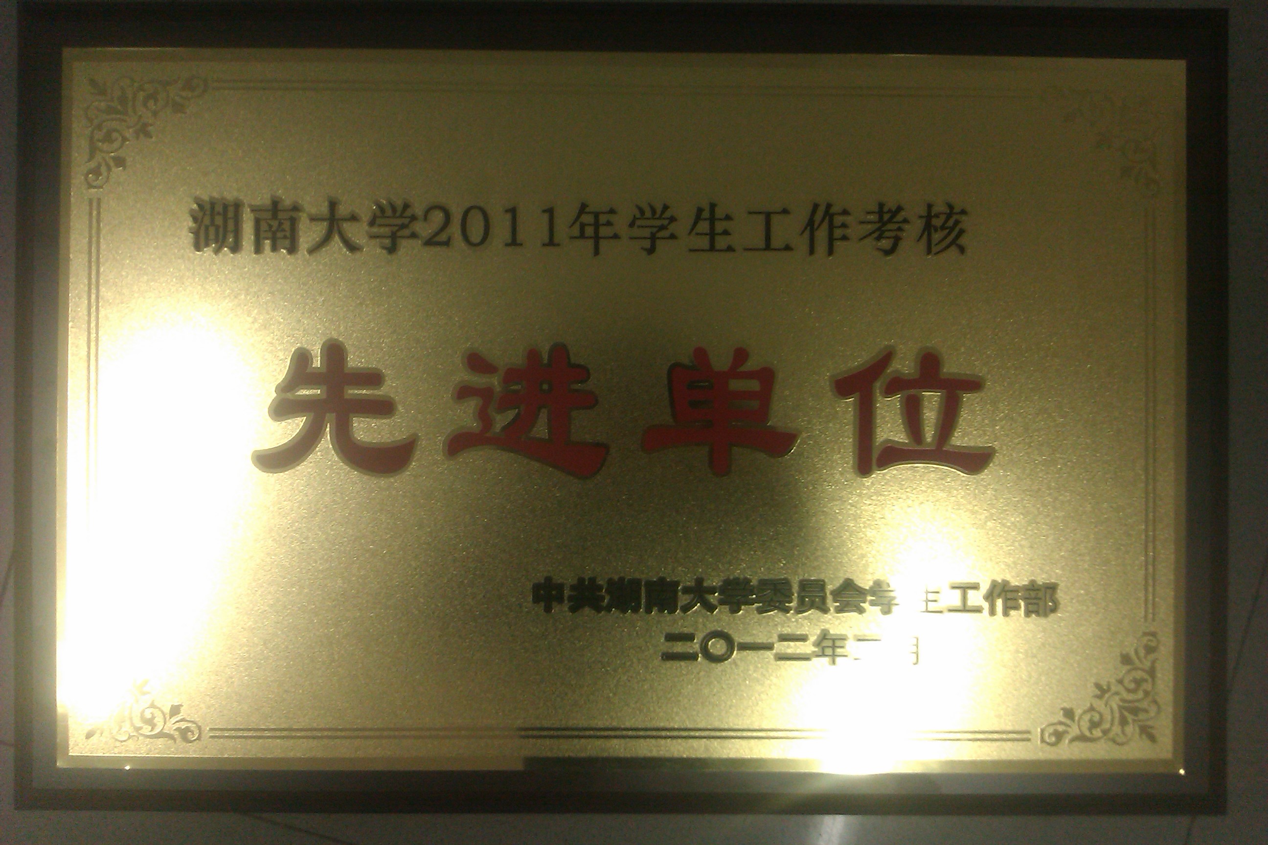 2011学年学生工作考核先进单位”。学院党委副书记陈义红代表学院上台接受先进奖牌。