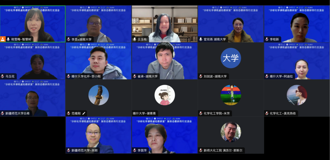 宦双燕教授介绍了本次活动的主题和参会人员的情况,三校教师代表分别报告了本校分析化学实验课程的开设情况和发展现状,全体虚拟教研室成员针对当前的现状和遇到的问题进行了交流。本次会议在智慧树组织的虚拟教研室平台上开展,由智慧树西行办税雪梅主持。