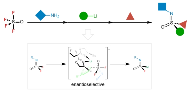 硫元素及其分子广泛分布于自然界各地理维度和物质层次,还享有元素界“变色龙”的美誉,可以在多重氧化态之间自由切换,进而创造丰富的功能。近年来,硫中心手性分子在药物、材料、合成等领域的价值和需求显著提升。在传统的硫中心手性分子合成化学中,六价硫手性过渡依赖四价硫手性分子为前体获得,通常先制备光学活性的四价硫,再将其手性转移至六价硫。另一种研究思路是先制备前手性六价硫分子,随后对邻近硫中心的碳(杂)原子进行修饰达到去对称化效果,硫中心直接的化学改造无法完成,结构多样性和功能也必然有限。