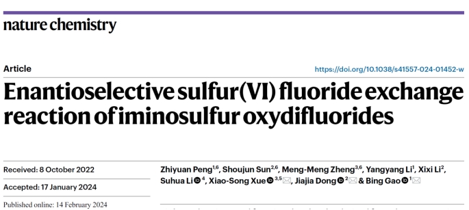 高兵教授课题组在硫中心手性化学领域取得进展