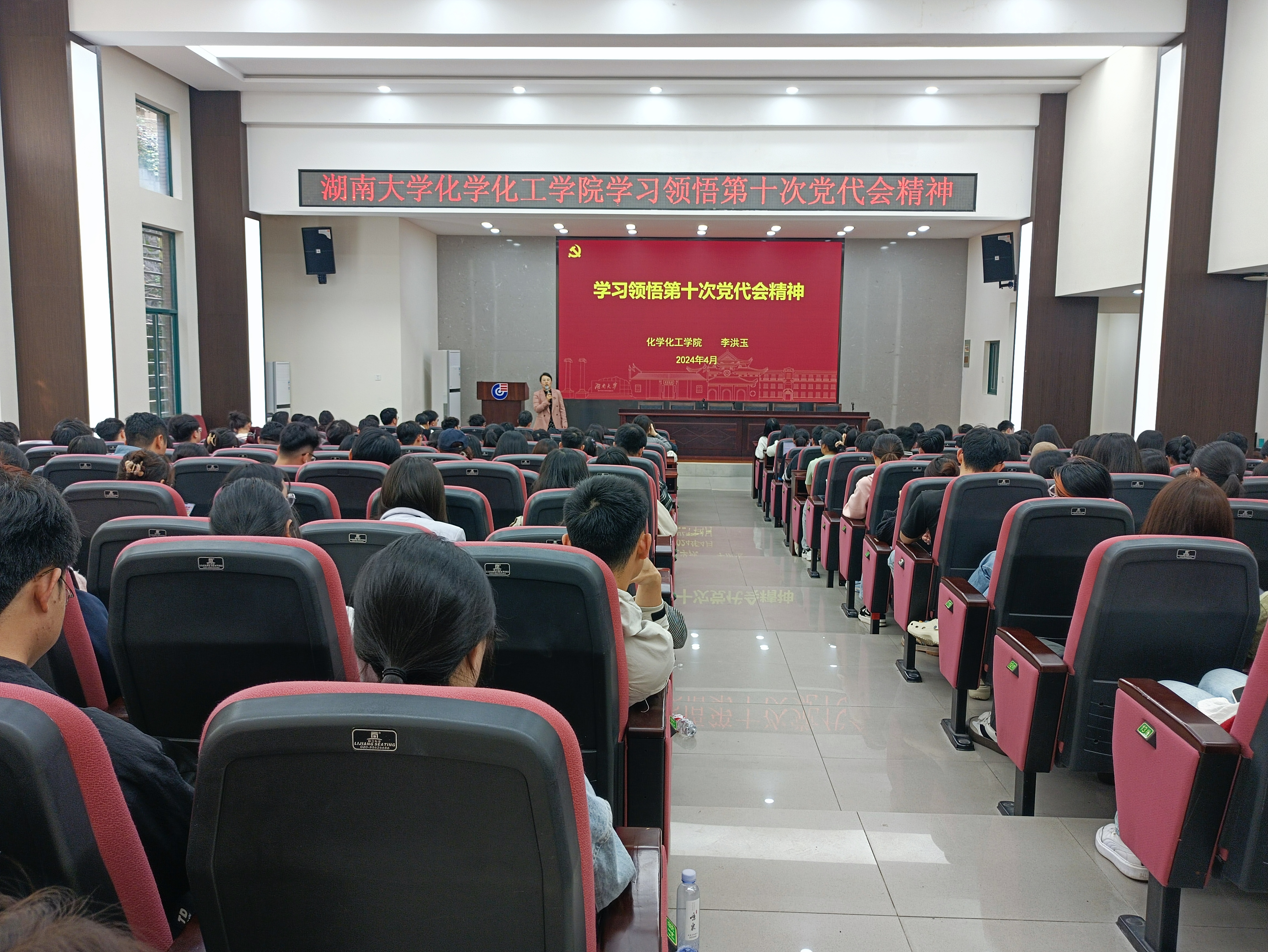 第十次代表大会精神专题宣讲会在新化工楼D区报告厅举行。学院党委副书记李洪玉主讲,学生党支部书记、毕业生党员和预备党员参加会议学习领悟。
