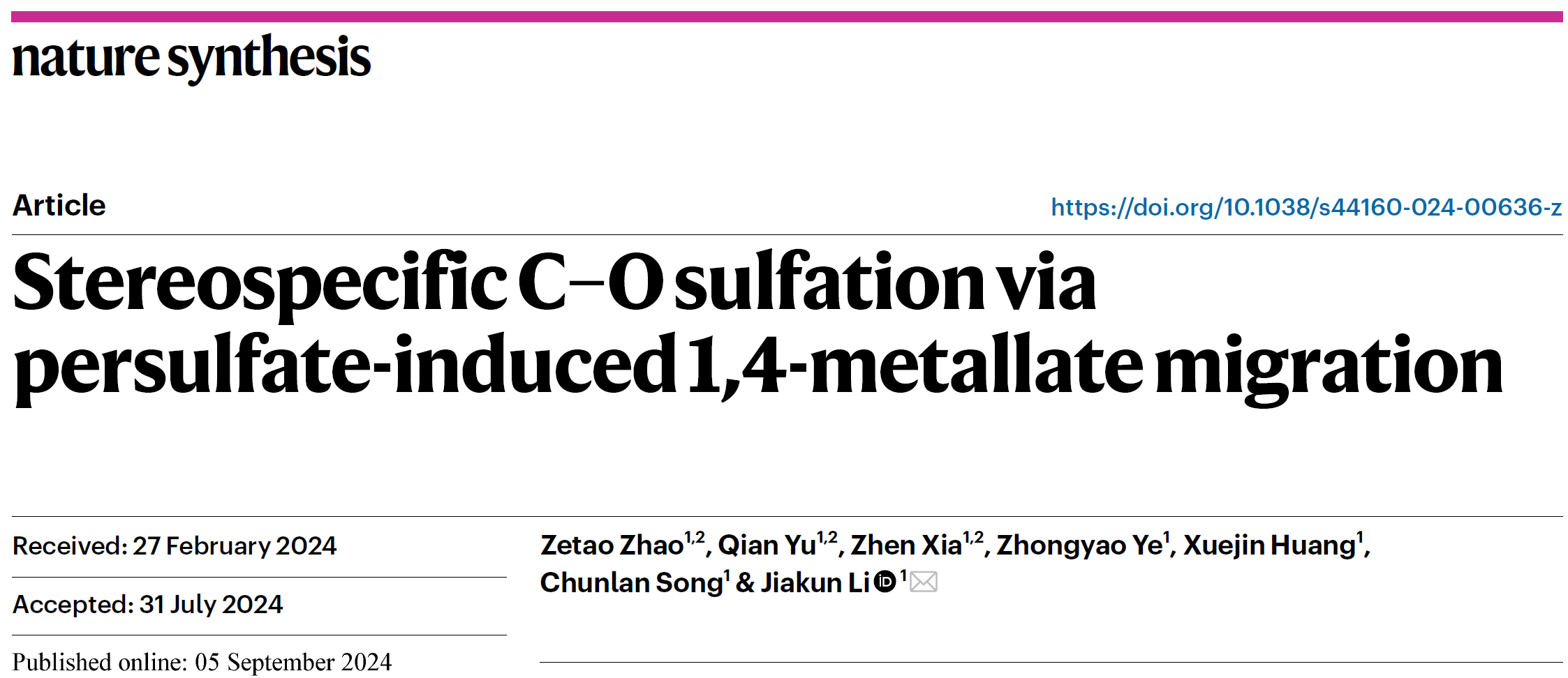 学院李家昆教授课题组在硫酸化领域取得重要进展