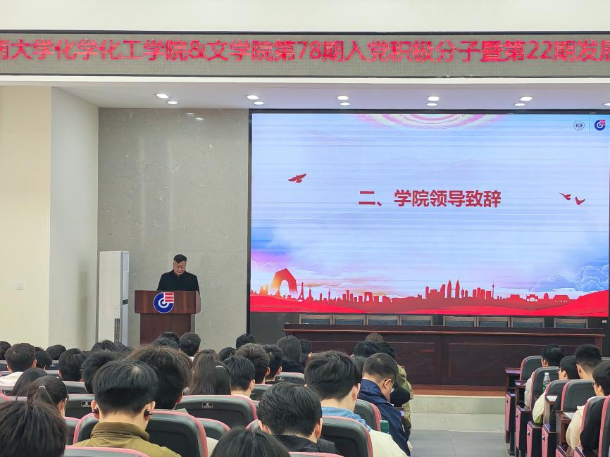 2024级化学工程与工艺2班硕士研究生高苗苗同学作为学员代表进行发言,会议上,高苗苗同学表达了对党组织的感恩之心,表示将珍惜学习机会,认真学习党的理论知识,传承红色基因,以实际行动践行党的宗旨,努力提升党性修养,争取早日成为一名合格的共产党员,为党和人民的事业不懈奋斗。