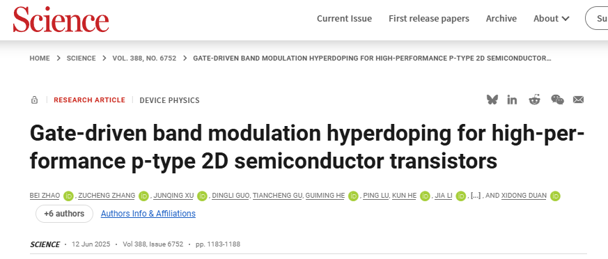 研究成果以“Gate-driven band modulation hyperdoping for high-performance p-type 2D semiconductor transistors” 为题发表在Science上。成人漫画