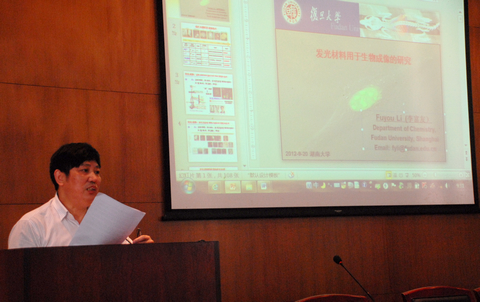 应国家重点实验室邀请,2012年9月20日,复旦大学特聘教授,博士生导师,国家杰出青年科学基金获得者李富友教授来成人漫画 讲学,作了题为“发光材料用于生物成像的研究”的学术报告,受到了广大师生的热烈欢迎,杨荣华教授主持学术报告。