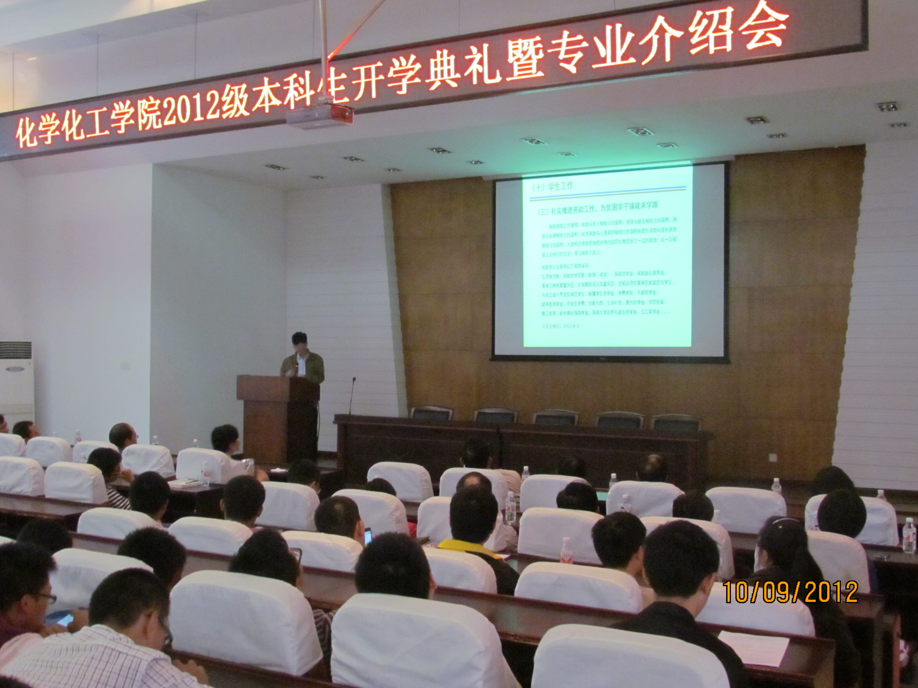 2012级新生开学典礼暨专业介绍会在学院领导的关心指导和学工办老师的认真组织开展中,圆满结束,会议现场气氛和谐,相信新一代化工人定能续写化工院新的辉煌。