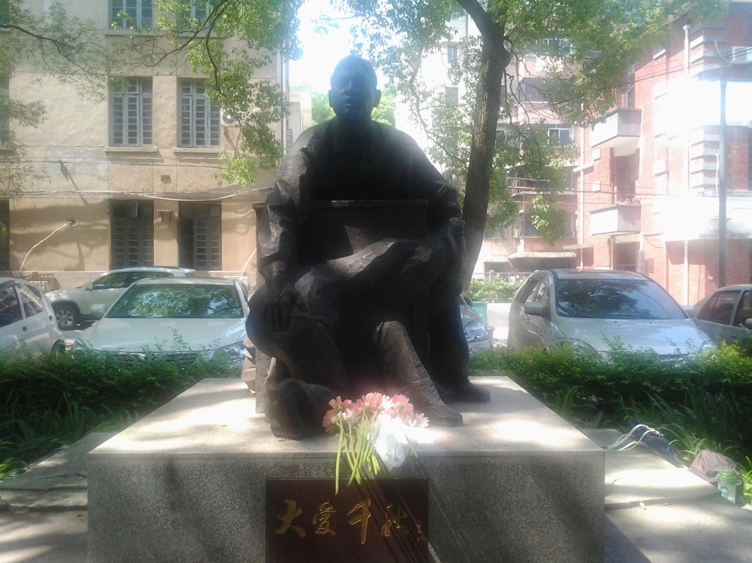 在校区谭千秋学长塑像前,举行仪式纪念我们在地震中牺牲的77级学长谭千秋。