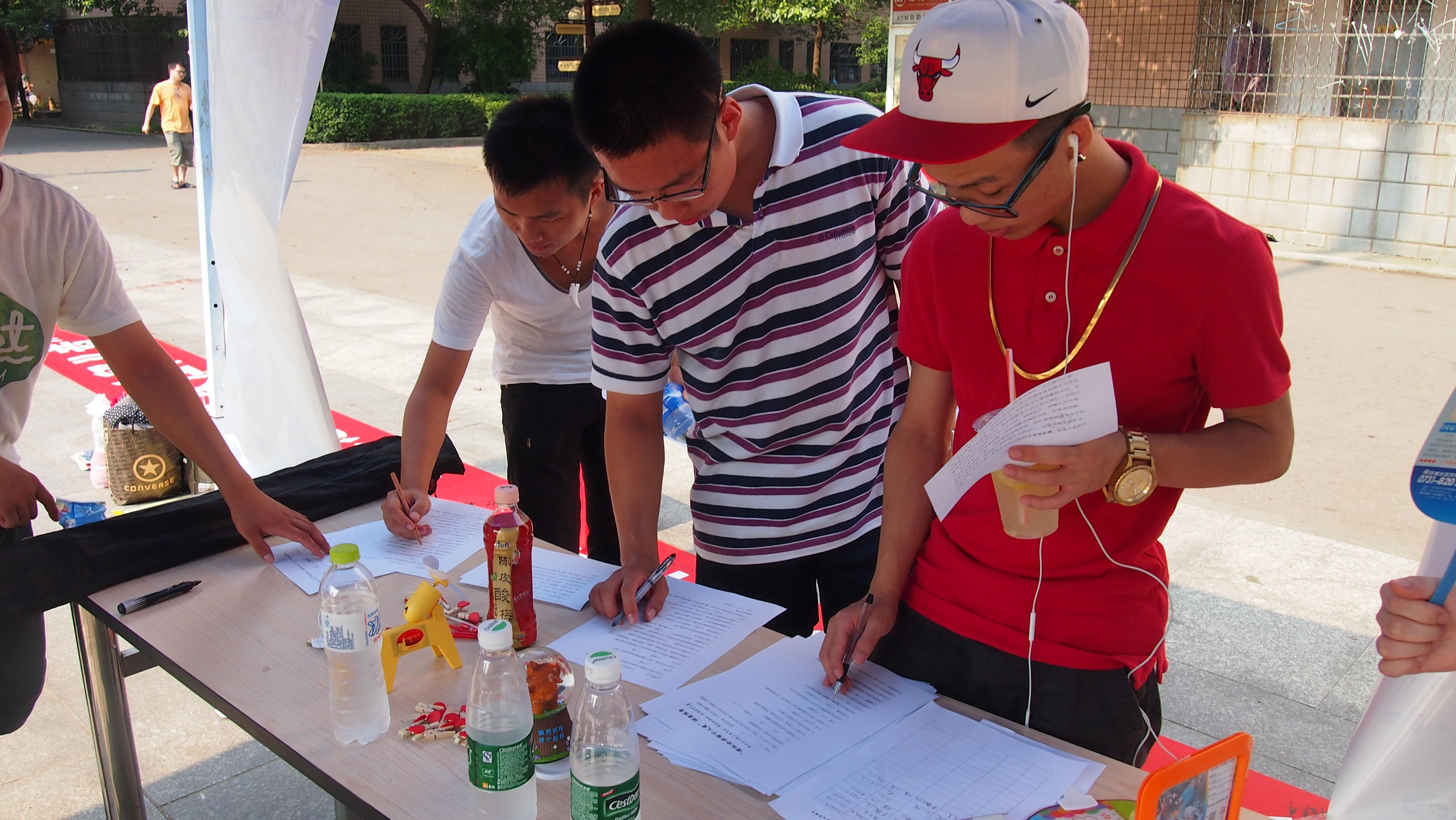 即使天气炎热似火,却也烧不熄队员们对于活动的热情。冒着40度的高温,队员们于2点20在天马篮球场集合。大家支起宣传棚,撑起宣传展板,贴好横幅,调试宣传录音,开始劝募及捐赠活动。期间,有几位有支教及相关公益经历的学长前来捐赠,与队员们详谈了支教经验与感受,让队员们受益良多,并且深刻认识到了如何才能更好地与留守儿童沟通,如何能更好地展现我们对他们的关心,如何最大限度地帮助他们的学习与生活。