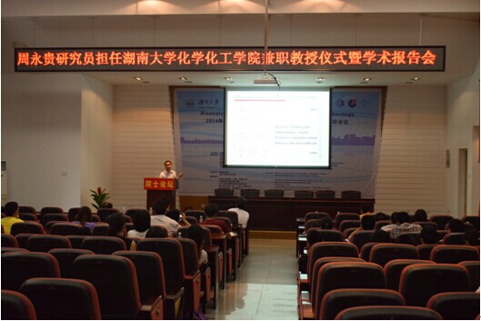 会议由成人漫画 副院长江国防主持。院长蒋健晖教授向在座的师生介绍了周永贵研究员的工作经历和研究方向,对周永贵研究员开展的研究工作给予了高度评价,并代表全院师生对其受聘为学院兼职教授表示热烈欢迎。随后,蒋健晖院长与郭灿城教授为周永贵研究员颁发了聘书,蒋健晖院长为其佩戴校徽。周永贵研究员对成人漫画 聘任其担任兼职教授表示感谢,并表示将通过开展合作研究、联合培养研究生等多种途径为学院的建设发展做贡献。随即,周永贵研究员为师生作了题为《芳香化合物的不对称氢化》的学术报告。学术报告持续近两个小时,既报告了其研究方向的国际前沿动态,又具体详细地阐述了其领导的课题小组在此领域研究的具体问题。报告完毕后,周永贵研究员还与在座师生进行了热烈互动,对师生有关学术研究、课题选择以及该课题中的相关问题进行了深入探讨和细致解答。