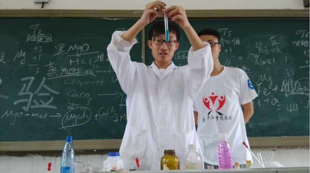 介绍未完,台下的同学们同学们已跃跃欲试。经简单分组、分配任务后,清理桌面的行动正式开始。短短一个小时,阶梯教室桌面已被打扫得一尘不染,负责检查的老师们不禁为同学们与“三下乡”队员们竖起大拇指。望着焕然一新的阶梯教室,来自初二(2)班、艺翔组组长唐军同学总结到:“大家在擦桌子的时候都会感觉到很不容易,所以在平时的学习过程中应该爱护自己的桌椅,并且大学生哥哥还介绍了涂改液的危害,建议同学们平时尽量少用或者不用涂改液。”另一位同学王宇则表示经过此次活动,他对化学产生了浓厚的兴趣,希望以后能成为化学家,运用自己所学习到知识改善我们的生活。