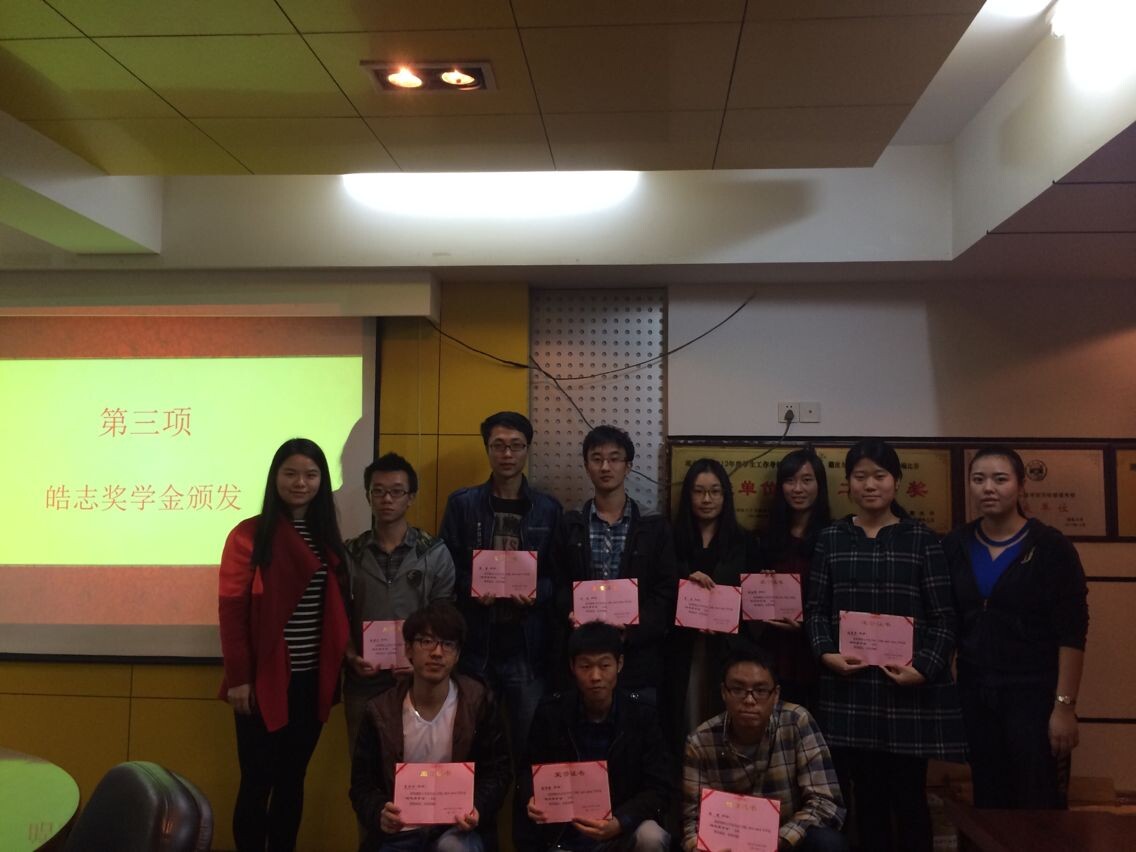 在院D区会议室为优秀同学举行了皓志、光华奖学金的颁奖仪式,院党委副书记陈义红亲自为获奖同学颁发荣誉证书。