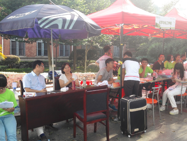 迎新期间,在东方红和天马设置两个迎新点,向全院征集志愿者300余人,分批值班,考虑到有晚上到湖大的新生,院里安排了通宵班。每一班的志愿者们都早到迟退,尽心尽力地服务广大新生和家长。志愿者形成了一道靓丽的风景线,向到来的新生和家长展现了化工院优秀的传统和服务精神。此外,院领导也前来询问招新的进度,与前来的家长热情地聊天,亲切慰问值班的志愿者同志。晚上,院领导去新生寝室和新生们聊天,带去学院的关怀。